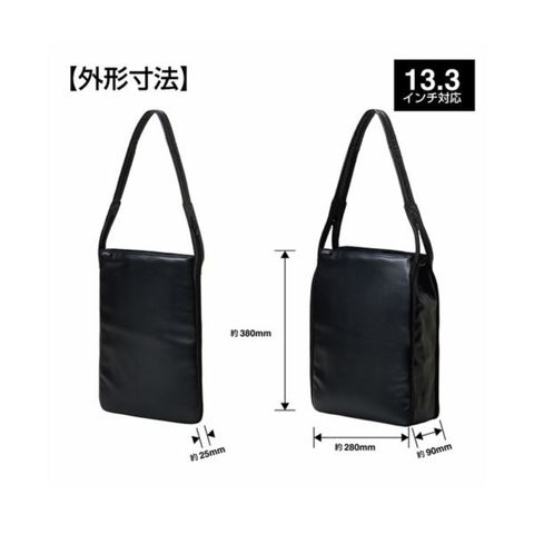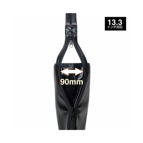 ●「ジプト」は持ち手とファスナーが一体化したマチがひろがるノートPC用トートバッグです。13.3型対応・PUタイプのクロです。
