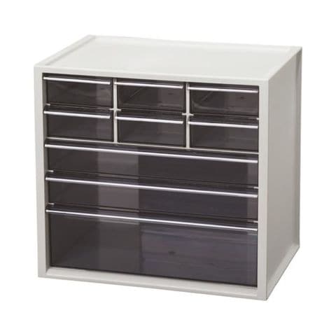 ●デスクまわりの、小物や雑貨の収納に便利な引出しが9個あるパーツキャビネット。