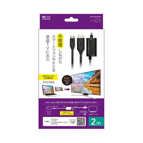 ナカバヤシ ミヨシ PD対応Type-C to HDMIケーブル 2m USD-PFH20/BK 1本 【同梱不可】【代引不可】[▲][TP]