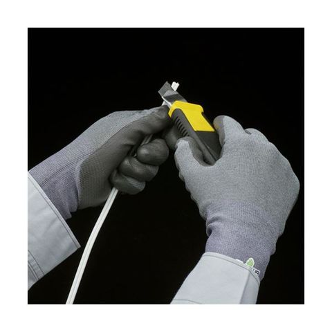 指先までしっかりフィットし、作業性に優れたポリウレタンコートの耐切創手袋(耐切創レベル:X/D)