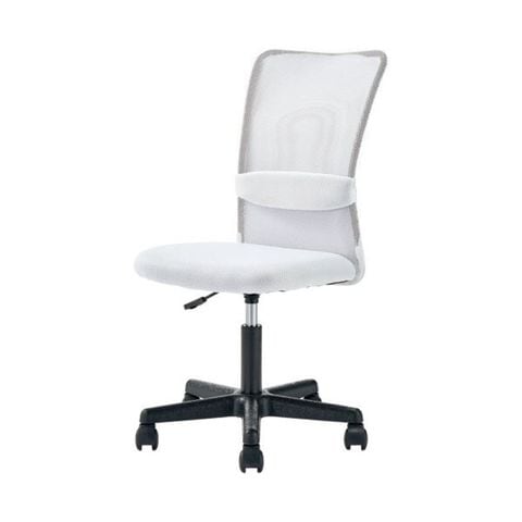 ●ランバーサポートがついたホワイト/ブラックのメッシュチェアー。