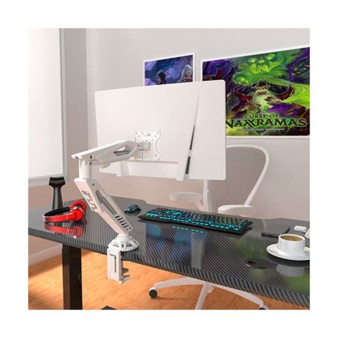 ゲーミングデザインのメカニカルスプリング式アーム。前後・左右・上下あらゆる方向に対応。簡単に高さ調節が可能。