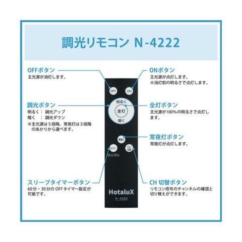 ●制御機能:リモコン(多段調光100%・約70%・約50%・約30%・約10%、LED常夜灯3段階、滅)