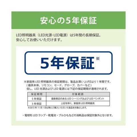 保証期間:LED光源・LED電源:5年、照明器具本体およびセード:1年