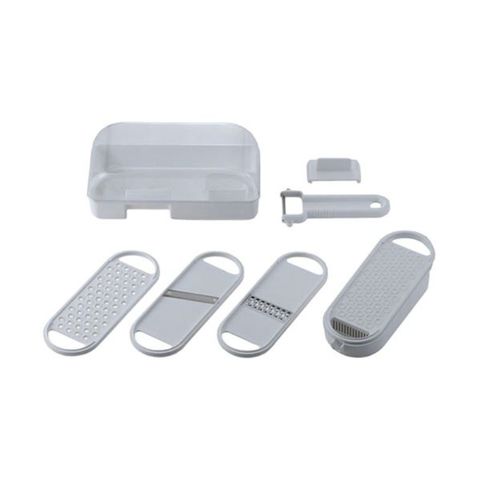 その他仕様:●セット内容:ホルダー・ピーラー・おろし・スライサー・千切・薬味おろし・受皿(水切り付)・収納容器