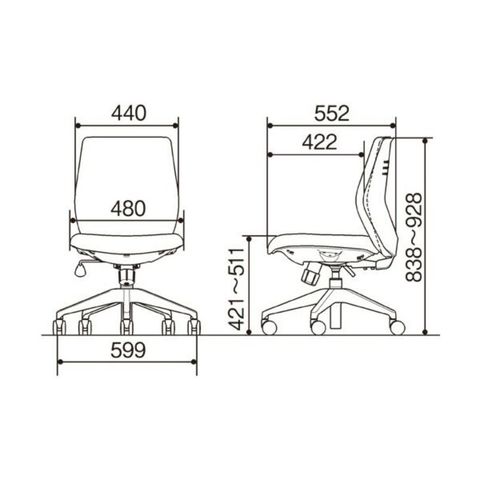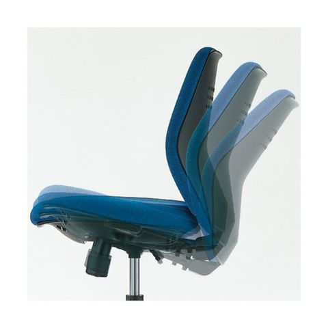 ●背が18度の傾斜に対し座が9度傾斜する、背と座が連動するロッキング。