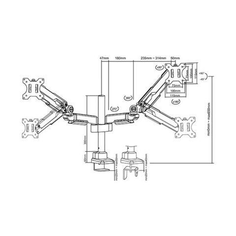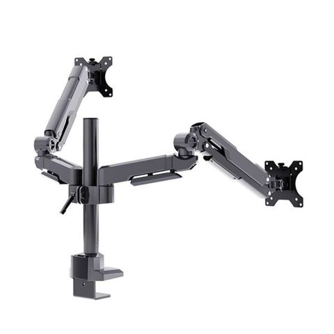 デュアルモニター用アーム。前後・左右・上下あらゆる方向に対応。分離式で稼働がスムーズ。
