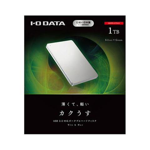 アイオーデータ USB 3.1 Gen1/2.0対応 ポータブルハードディスク「カクうす」 1TB シルバー×グリーン HDPX-UTS1S 1台 【同梱不可】【代引不可】[▲][TP]