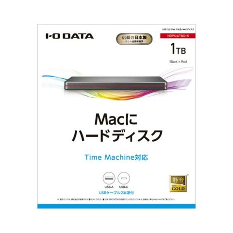 ●macOSのバックアップ機能「TimeMachine」に対応した1TB、ブラック×レッドのポータブルハードディスク「HDPX-UTSC」です。