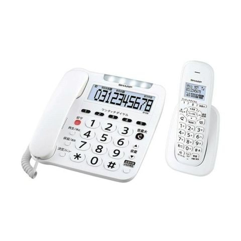 付属品:受話器、受話器コード、子機、子機用充電器、親機用ACアダプター、子機用充電池ふた、子機用充電池、電話機コード(約1.5m)、取扱説明書(「1.準備・トラブル編」「2.操作編」各1部)