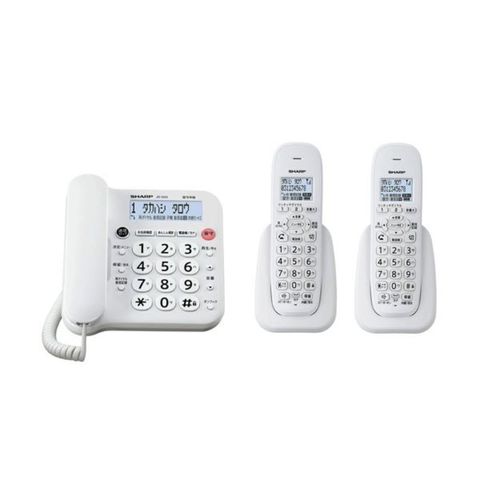 付属品:受話器、受話器コード、子機×2、子機用充電器×2、親機用ACアダプター、子機用充電池ふた×2、子機用充電池×2、電話機コード(約1.5m)、取扱説明書(「準備・トラブル編」「操作編」各1部)
