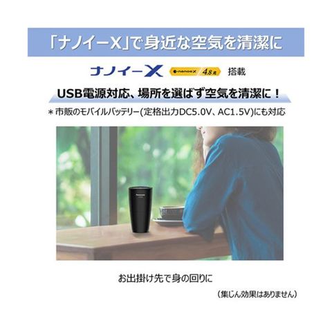 ●電源があるところはもちろん、USB電源だから市販のモバイルバッテリーにも対応!車で、オフィスで、おでかけ先で、場所を選ばず使える!(集じん効果はありません。)