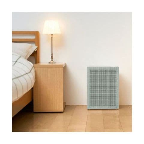 ●どんな空間にも調和するミニマルなデザインの空気清浄機「AIRMEGA150」。本体色はグリーンです。