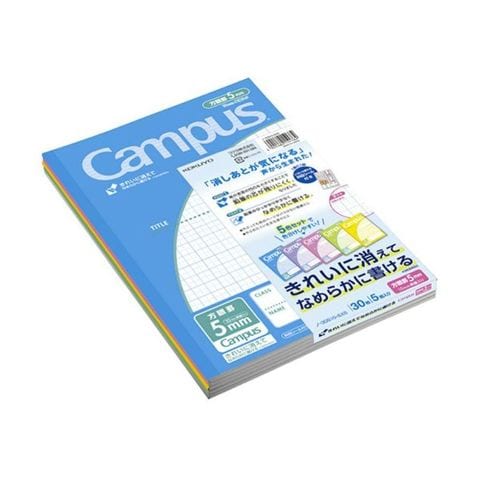 コクヨ キャンパスノート(用途別)5色パック セミB5 5mm方眼罫 30枚 ノ-30S10-5X5 1セット(120冊:5冊×24パック) 【同梱不可】【代引不可】[▲][TP]のレビュー