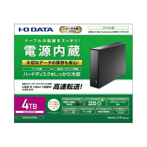アイオーデータ 外付ハードディスク USB3.1 Gen1(3.0)/2.0対応 電源内蔵 4TB ブラック HDJA-UT4R 1台 【同梱不可】【代引不可】[▲][TP]