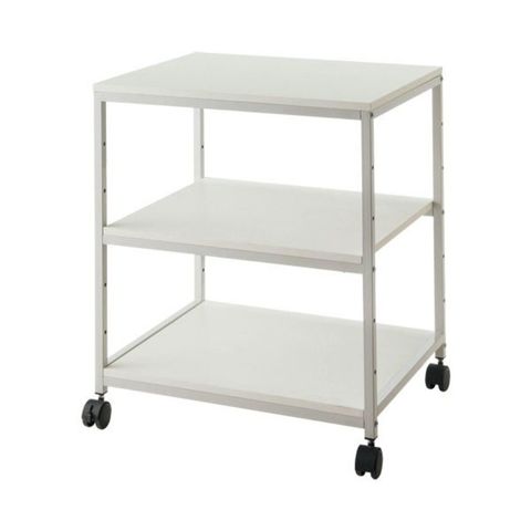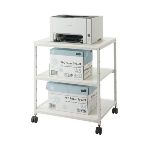 材質:フレーム・棚受け:スチール(粉体塗装)、天板・棚板:パーティクルボード・メラミン化粧板、キャスター:PP