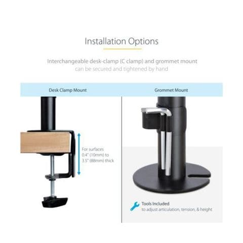 ●デスククランプとグロメットモニターマウント(いずれも厚さ10~88mmのデスクに対応)は、手で取付可能。