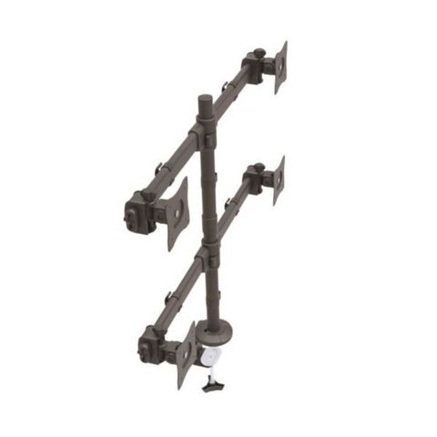 ●VESA75×75、または、100×100mm互換の頑丈なスチール製マルチモニターマウントは、1画面あたり最大27型(8kg)のディスプレイ4台に対応し、関節と高さを調整が可能。