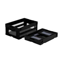 独自の構造で、棚としても使える折りたたみ式コンテナです。