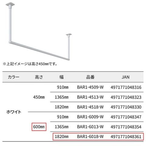 BAR1-6018-W ホスクリーン 固定式室内物干 BAR型 ホワイト 高さ 600mm×幅 1820mm 洗濯用品 【同梱不可】【代引不可】[▲][TP]