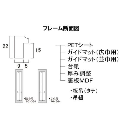 広巾用マットを使用した場合、76×364mmの短冊が収納できます。