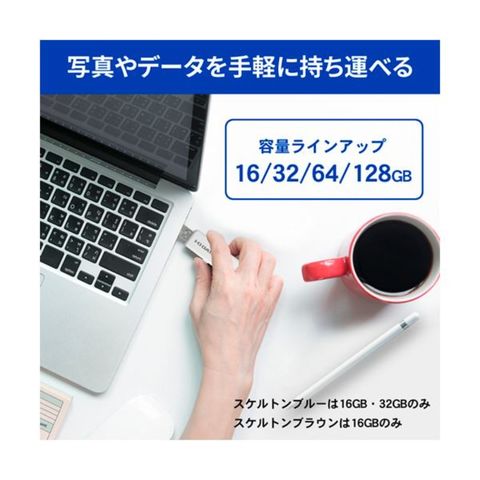 ●写真などのデータを気軽に持ち運ぶことができる32GBのUSBメモリーです。色はブラックです。