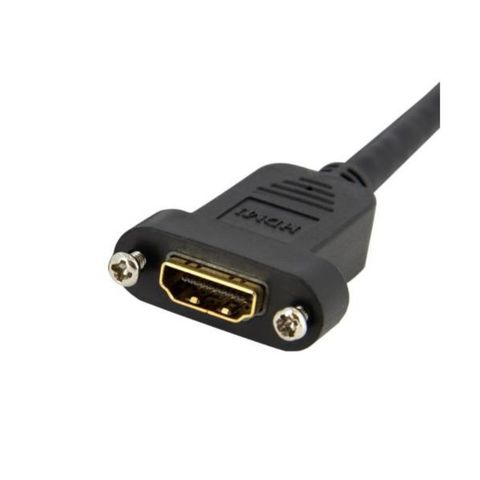 ●パネルマウント用ハイスピードHDMIケーブル(91cm)。一端にHDMIオスコネクタ、もう一端にHDMIパネルマウント用モールドコネクタ(メス)がついています。マシンポートやフェースにHDMI端子を固定しアクセスしやすくします。