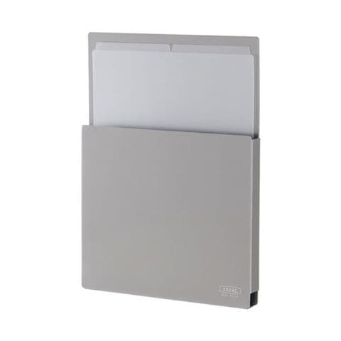 ●シンプルなデザインで、暮らしの中に優しく溶け込むライトグレーの収納ラック。深めのポケットでA4用紙が倒れにくい設計のA4タテ型です。