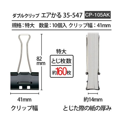 まとめ買い プラス ダブルクリップ エアかる 特大 ブラック CP-105AK 1箱(10個) 【×5セット】 【同梱不可】【代引不可】[▲][TP]