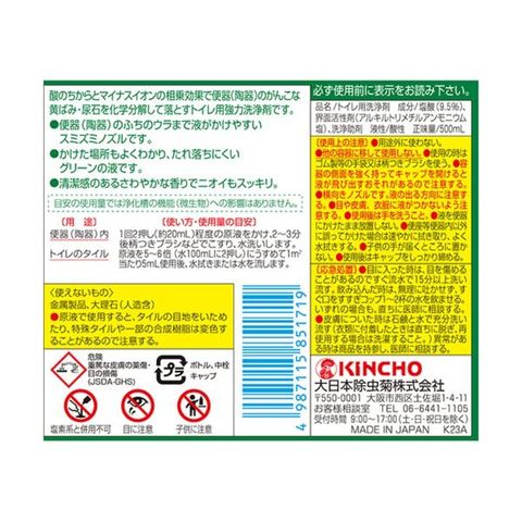 その他仕様:●使用量の目安:便器内/1回2押し(約20ml)程度(原液)、トイレタイル/液を5~6倍(水100mlに対して2押し)に薄め、1m2あたり5ml