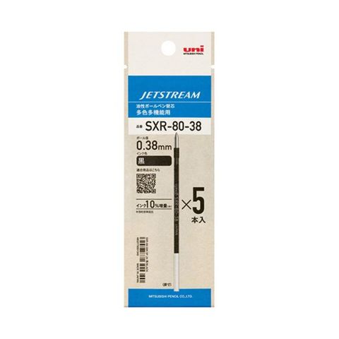 ●ジェットストリーム多色多機能用替え芯がリニューアル。ボール径0.38mm・インク色は黒、5本パックです。
