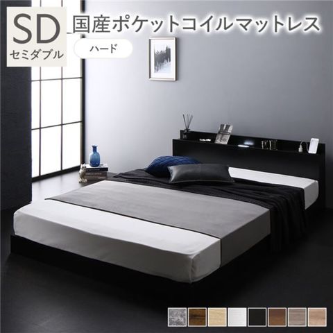 ベッド セミダブル 国産ポケットコイルマットレス付 ハード ブラック ローベッド 宮付 お客様組立品 【同梱不可】【代引不可】[▲][TP]