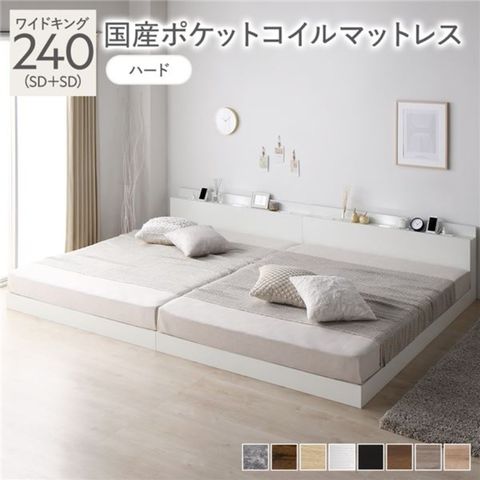 ベッド ワイドキング 240 (SD+SD) 国産ポケットコイルマットレス付 ハード ホワイト 連結 宮付 ローベッド お客様組立品 【同梱不可】【代引不可】[▲][TP]