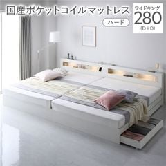 ベッド ワイドキング 200 S+S 国産ポケットコイルマットレス付 ハード ホワイト 連結 照明 宮付 収納ベッド 【同梱不可】【代引不可】[▲][TP]