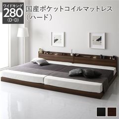 ベッド キング 180 (SS+S) 国産ポケットコイルマットレス付き ハード ホワイト 連結 すのこ 宮付 ローベッド 【同梱不可】【代引不可】[▲][TP]