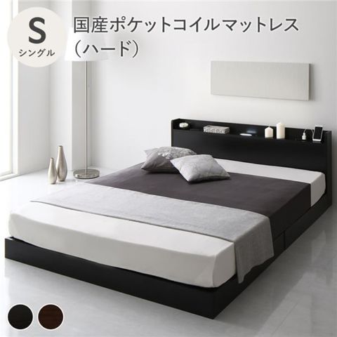ベッド シングル 国産ポケットコイルマットレス付き ハード ブラック 宮付 ローベッド すのこ 【同梱不可】【代引不可】[▲][TP]