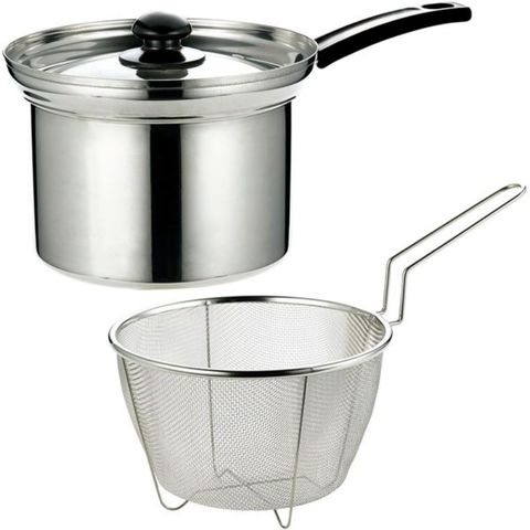 茹でたパスタや野菜の湯切りを楽にする、湯切りザル付き片手鍋具材の水洗い、茹でる、湯切り、煮込む、盛り付けまで手軽にできる鍋。深型なので、パスタやレトルト食品の温めに便利。片手鍋なので湯切りもラクラク。