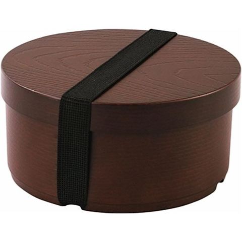 シックで高級感がありながら、お手入れしやすい樹脂製の曲げわっぱ風お弁当箱。女性におすすめのかわいい丸型、仕事カバンにちょうど良く男性ウケの良い長角型、レトロで使いやすい小判型の3タイプ。山中塗り加工が施された木目調の風合いが、お弁当の食材をいつもより美味しく感じさせる。電子レンジで温め直し可能。※中フタは外すこと。