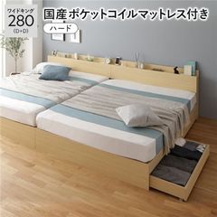 ベッド ワイドキング 240 S+D 国産ポケットコイルマットレス付 ハード グレージュ 連結 頑丈 すのこ 宮付 高さ調整 木製 【同梱不可】【代引不可】[▲][TP]