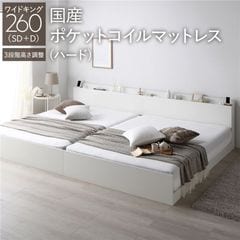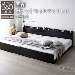 ベッド ワイドキング 240 SD+SD 国産ポケットコイルマットレス付 ハード ブラック 連結 高さ調整可 宮付 すのこ 【同梱不可】【代引不可】[▲][TP]
