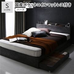 ベッド シングル 国産ポケットコイルマットレス付 ハード ブラック 低床 照明 宮付 すのこ ローベッド 寝具 【同梱不可】【代引不可】[▲][TP]