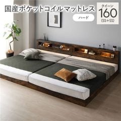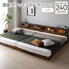 ベッド ワイドキング 280 D+D 国産ポケットコイルマットレス付 ハード ヴィンテージブラウン 連結 低床 照明 宮付 すのこ 【同梱不可】【代引不可】[▲][TP]
