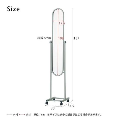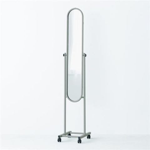 4個セットパイプスタンドミラー(キャスター付)(グレー/灰)幅30cm 楕円形 スリム 軽量 鏡 姿見 飛散防止 角度調整可 NK-108 組立式 【同梱不可】【代引不可】[▲][TP]