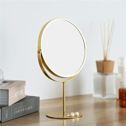 3倍鏡付卓上ミラーH LINO(ゴールド/金) メイク ヴィンテージ 置き型 ゴールド 真鍮風 拡大鏡 韓国インテリア NK-287 インテリア 【同梱不可】【代引不可】[▲][TP]
