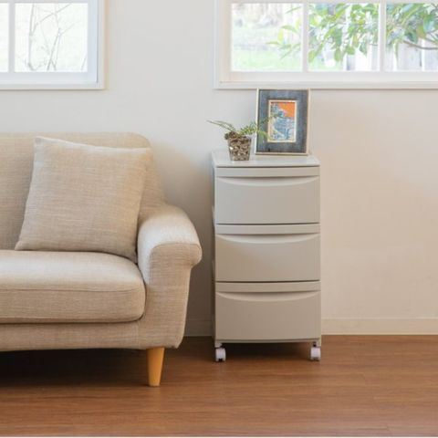 キャスター付 スリムチェスト3段 ミルクティーベージュ 組立式 収納 インテリア 【同梱不可】【代引不可】[▲][TP]