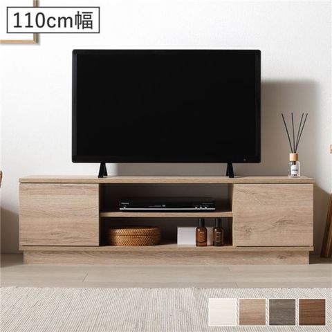 扉付き テレビ台 テレビボード 110cm幅 ナチュラル 壁置きタイプ 収納力抜群 可動棚 コード穴付 ローボード リビング お客様組立品 【同梱不可】【代引不可】[▲][TP]