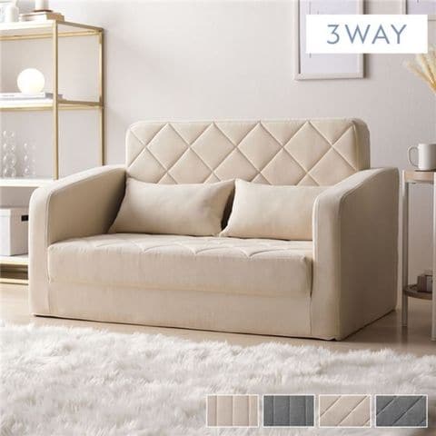 3WAY ソファベッド 2人掛け アイボリー ダイヤキルト 肘付き 高反発ウレタン 体圧分散 寝具 リビング インテリア雑貨 お客様組立品 【同梱不可】【代引不可】[▲][TP]