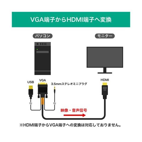 ※単方向信号設計のため、HDMIからVGAへの変換には対応しておりません。