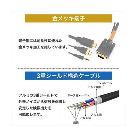 HORIC VGA→HDMI変換ケーブル 2m VGHD20-030BK 【同梱不可】【代引不可】[▲][TP]のレビュー