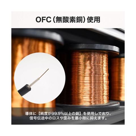 導体には伝導性の高いOFC(無酸素銅)を使用しており、伝送中のロスや歪みを最小限に抑えます。